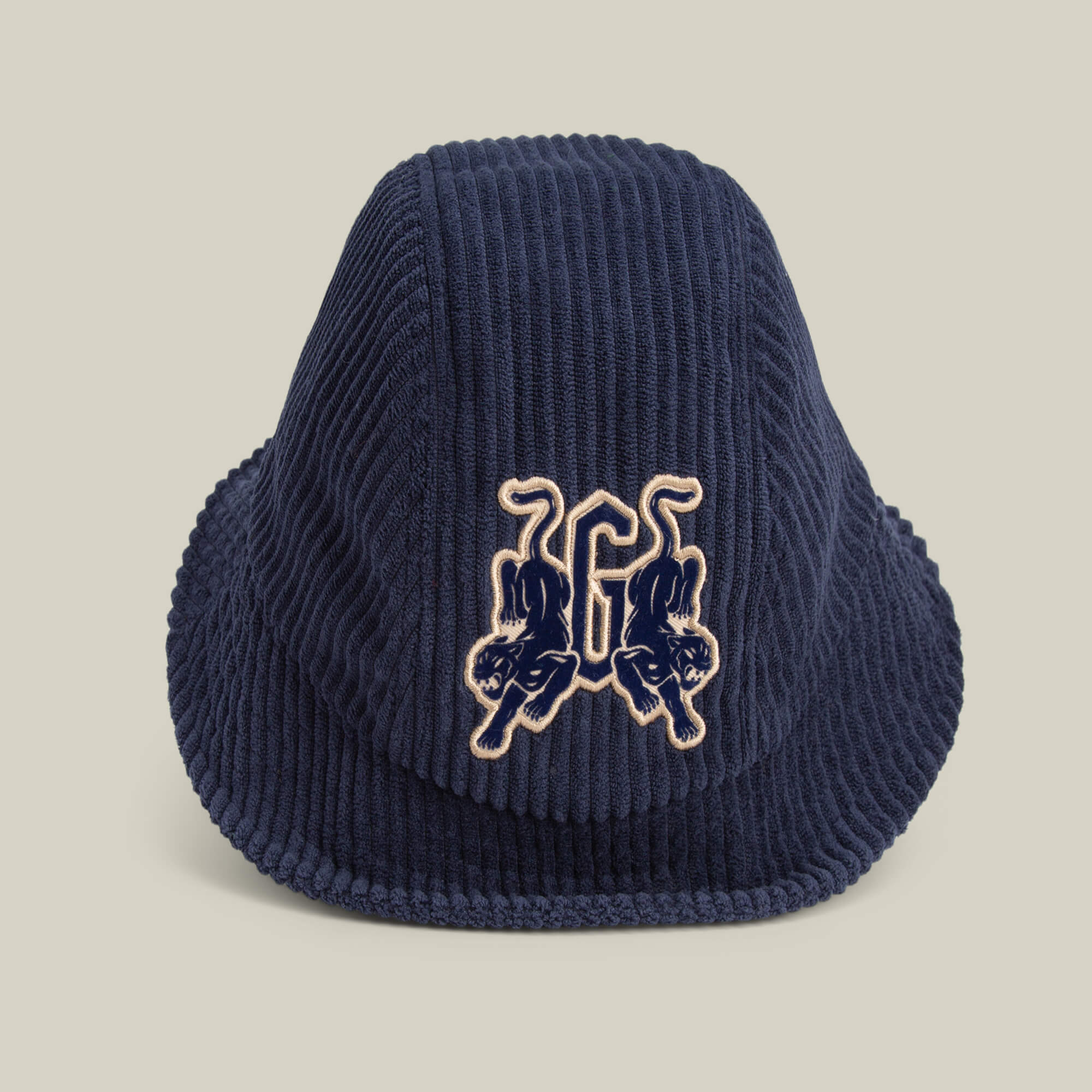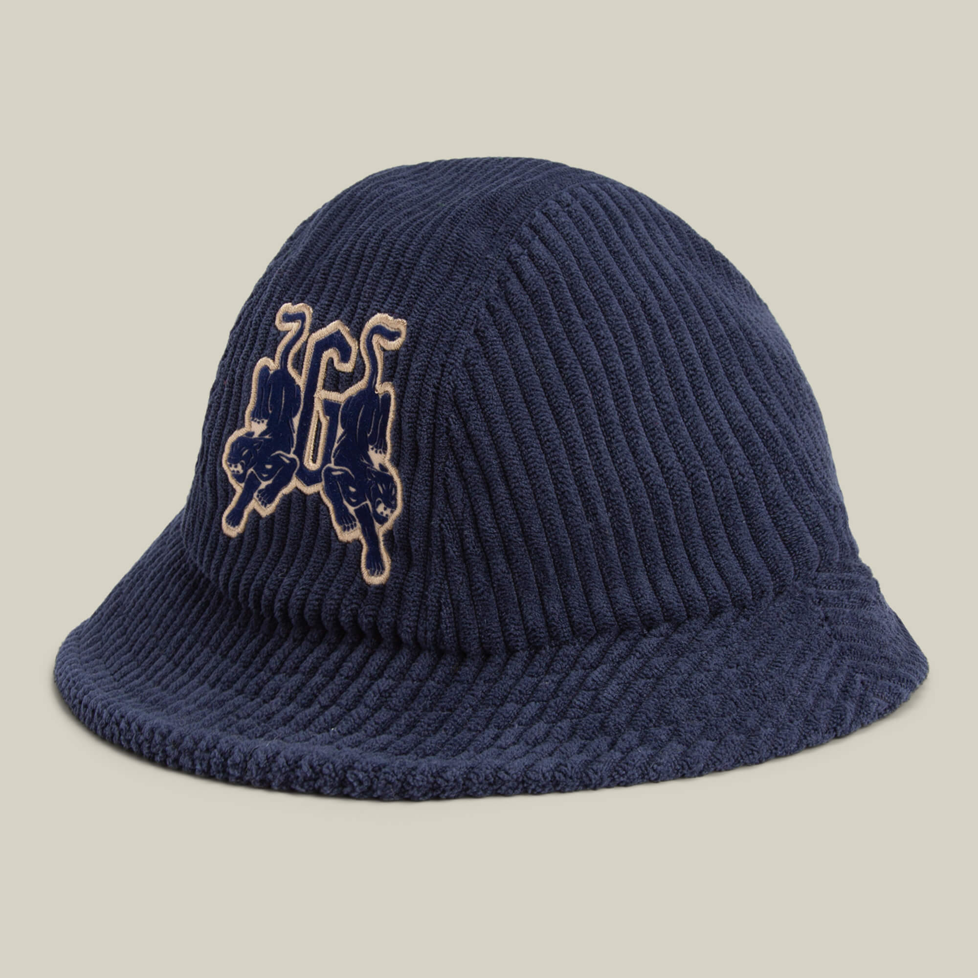 Corduroy discipline meets sideline swagger. Future Standards aren’t about following the playbook, they are the playbook. Navy ribs with enough texture to make denim jealous, and twin panthers running drills on the crown. It’s half bucket, half helmet, all authority.