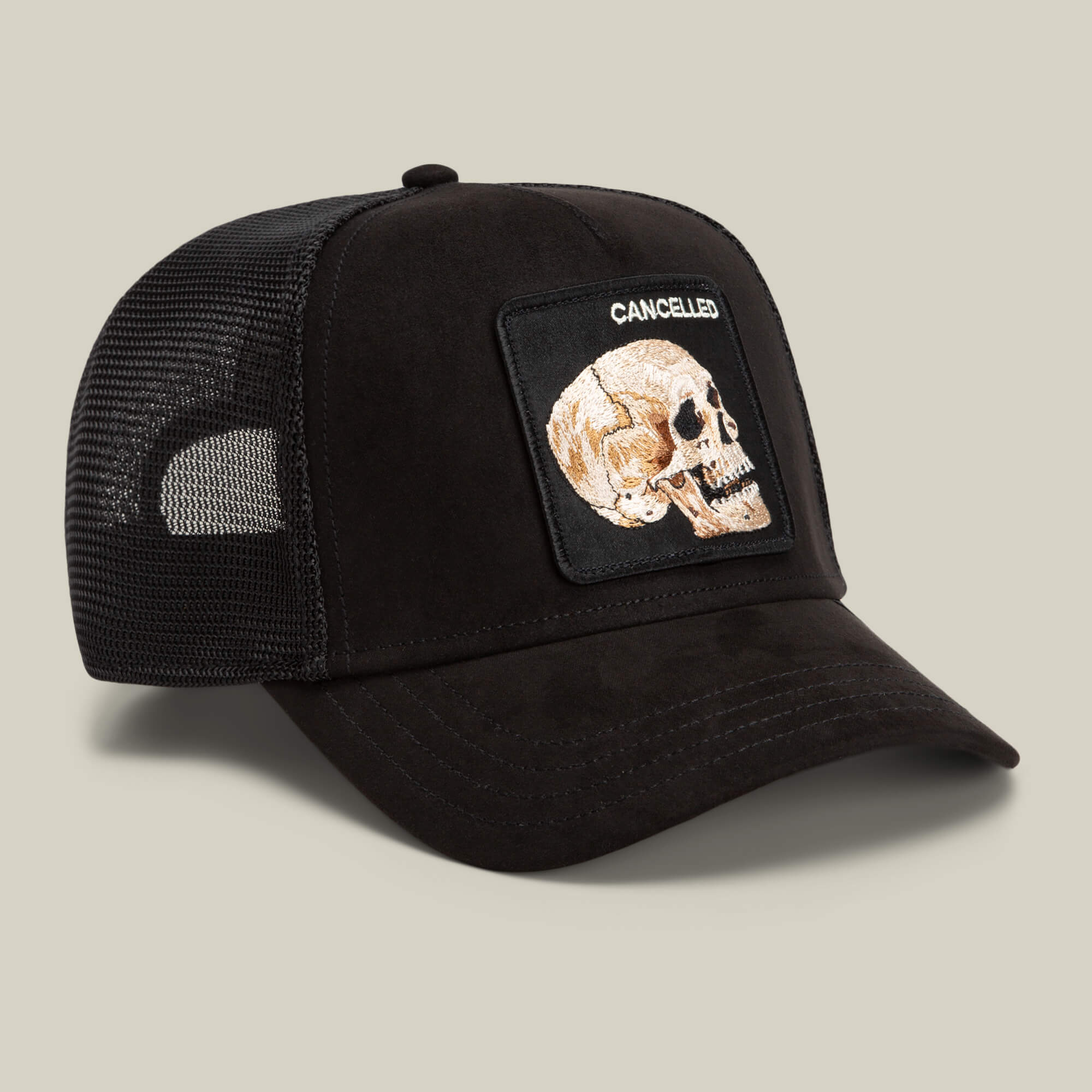 The hat that has sold out 3 times is back with the same energy but now in a limited lush microsuede body. A stitched skull for the ones who’ve been called out, crossed out, and logged off. This trucker tips its brim to those ready to speak their mind—loud, raw, and unbothered by the comments section.