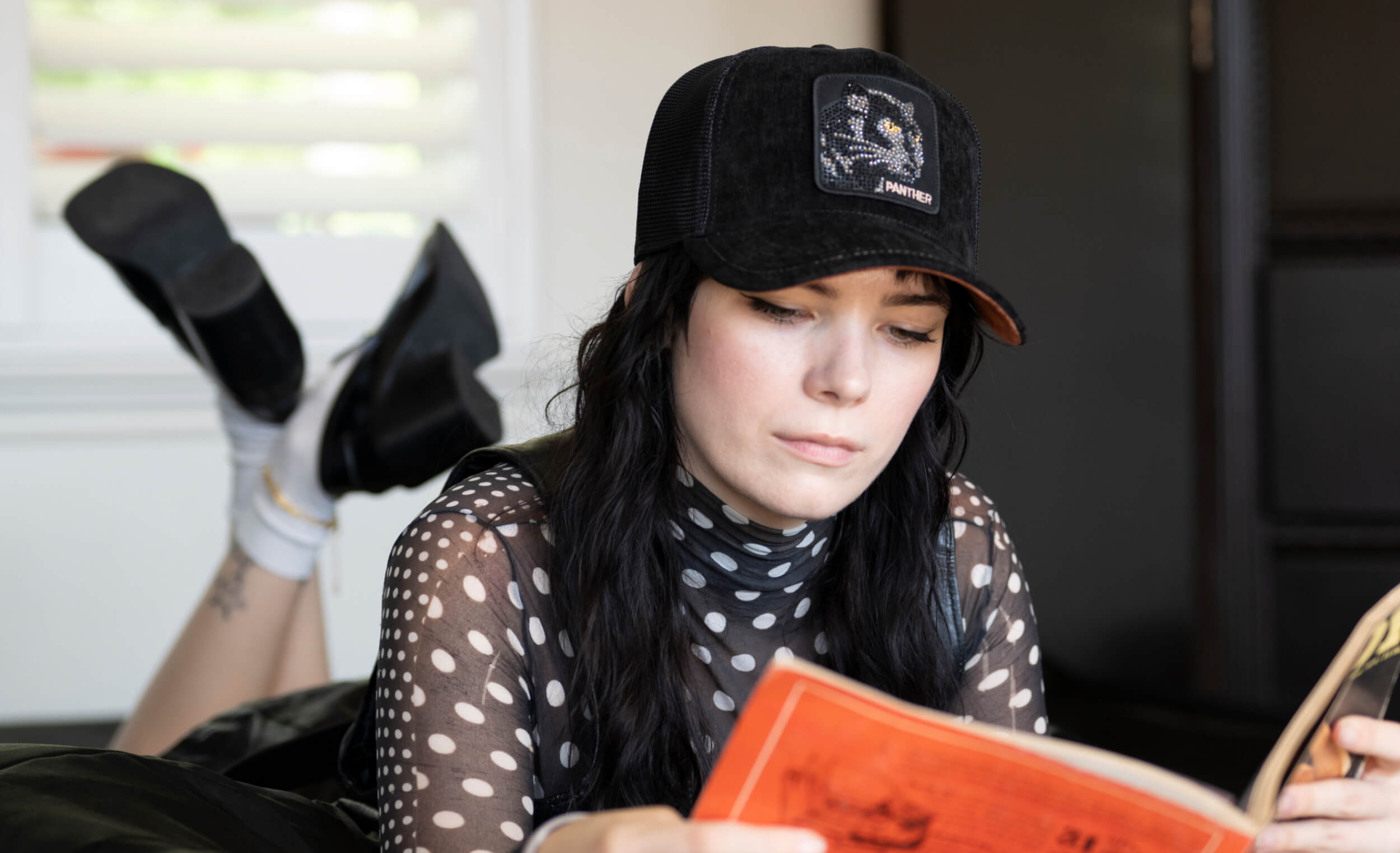 The Goorin Bros. Iced Panther cap in VOID features an embroidered luxury panther head with diamond eyes and the word "PANTHER" on a patch, displayed against a plain beige background.