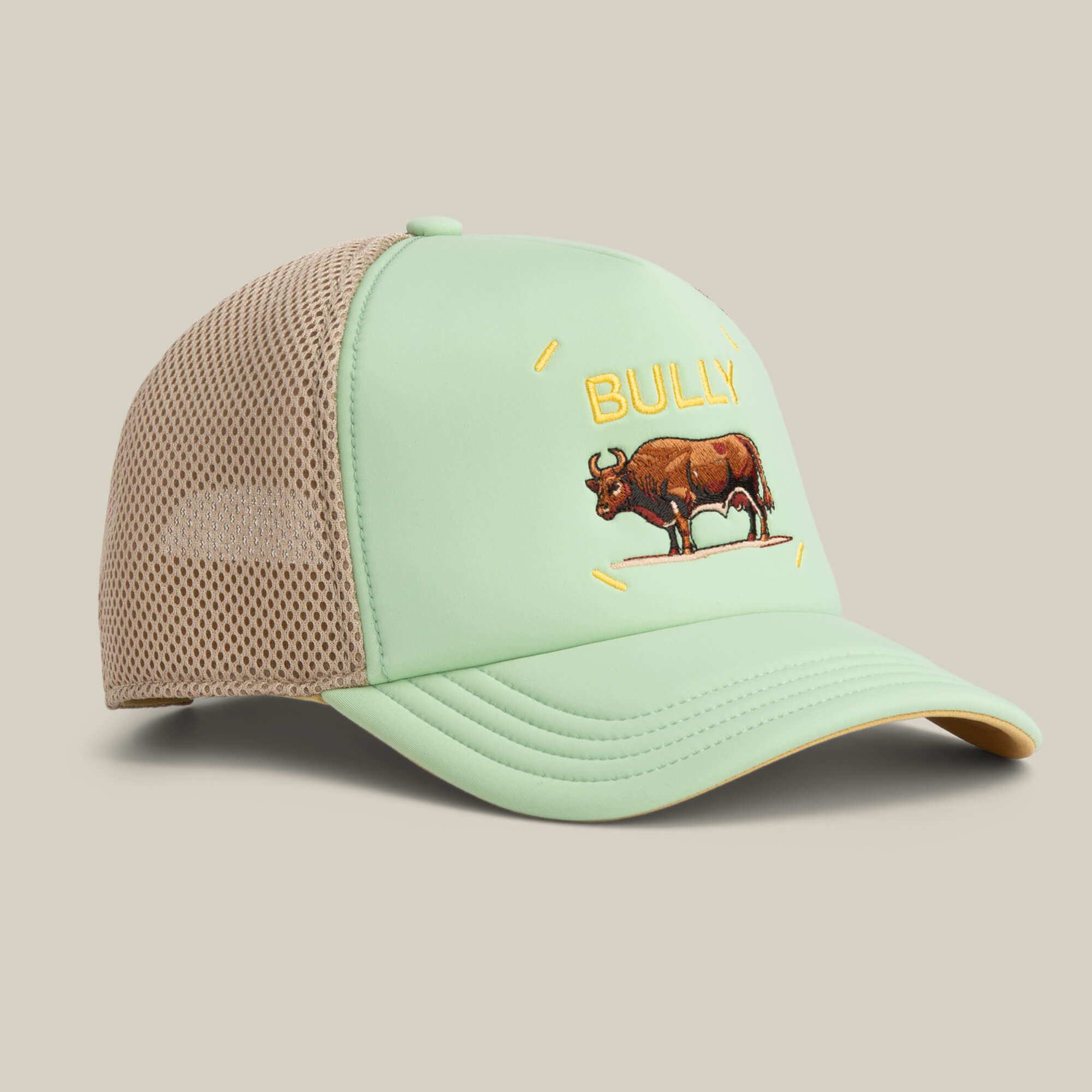 Soft green, grounded energy, and a bull that doesn’t flinch. BULLY sits bold above the animal, saying exactly what it needs to say. Structured enough to hold its shape. Flexible enough to wear on repeat. Calm, collected, and not interested in proving anything.