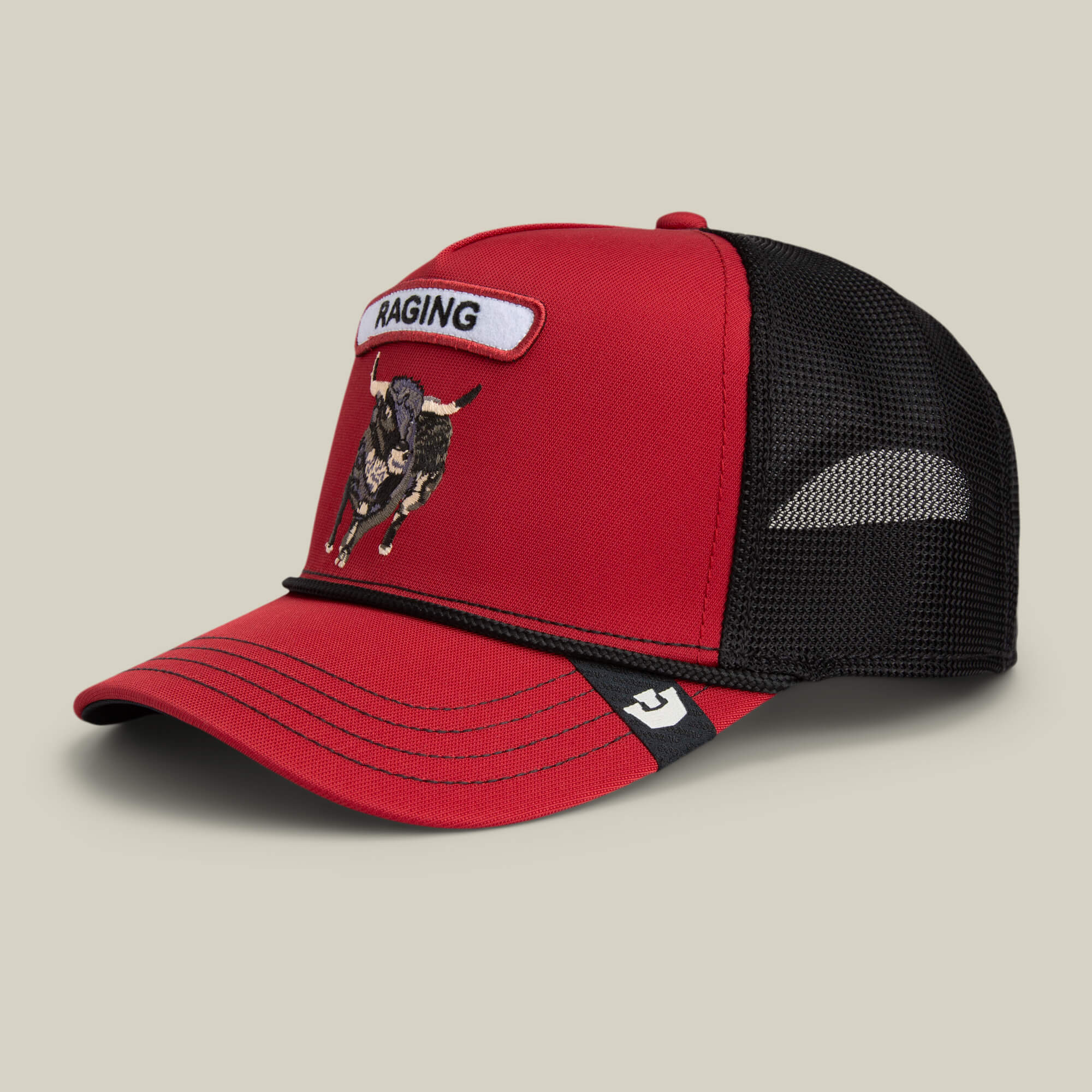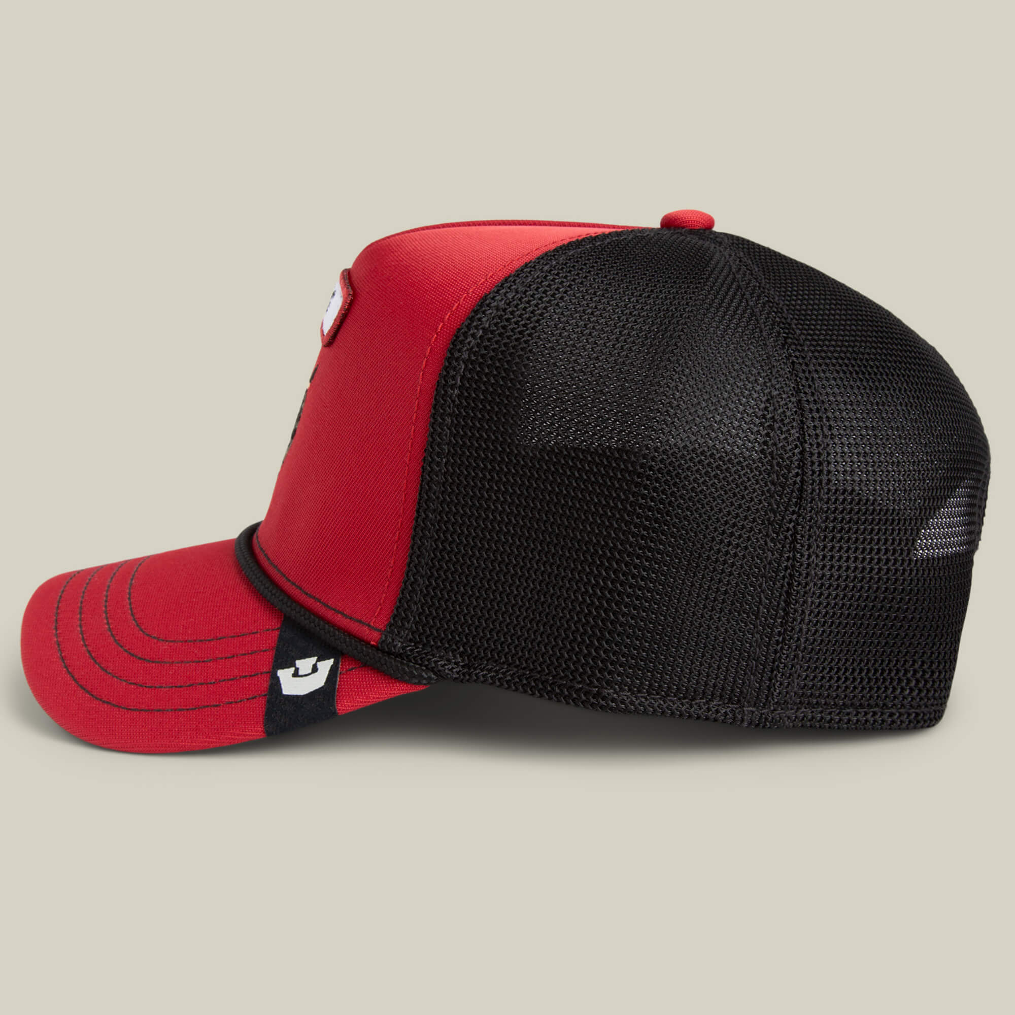 Red crown, black mesh, and a bull patch charging straight out front. This trucker doesn’t do calm—it’s all force, fire, and forward momentum. Wear it when subtle just won’t cut it.