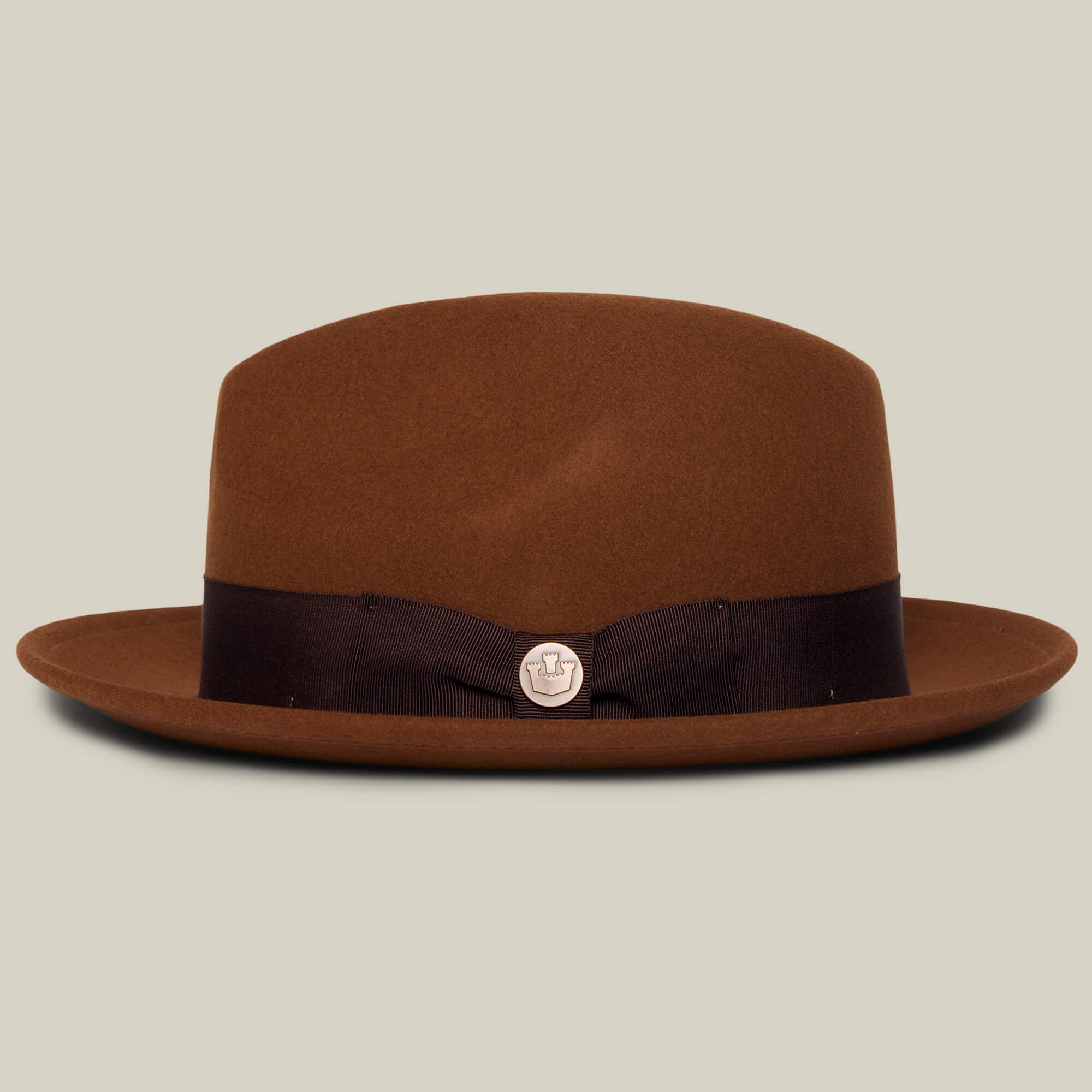 An American-made fedora with a cult following. This all-season hat features a center dent crown, snap brim, a grosgrain hatband with a pinched bow, and a German wicking sweatband.