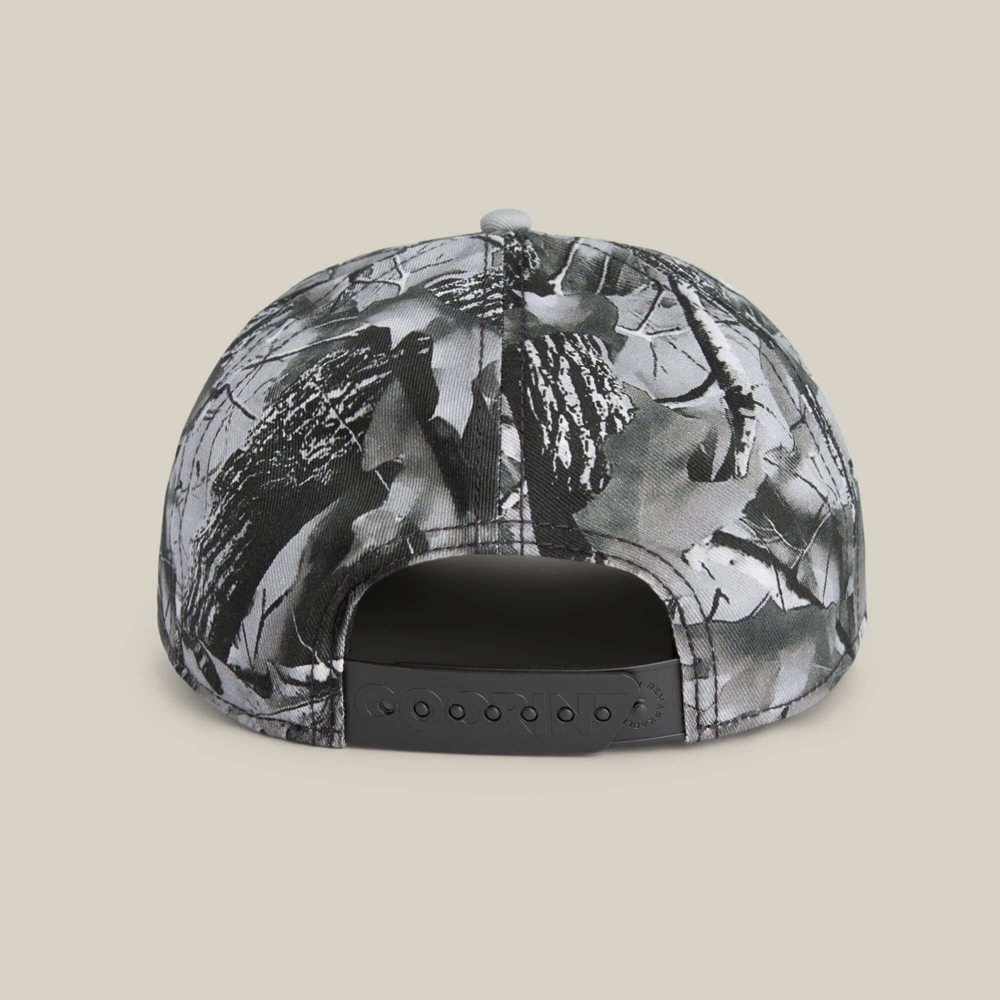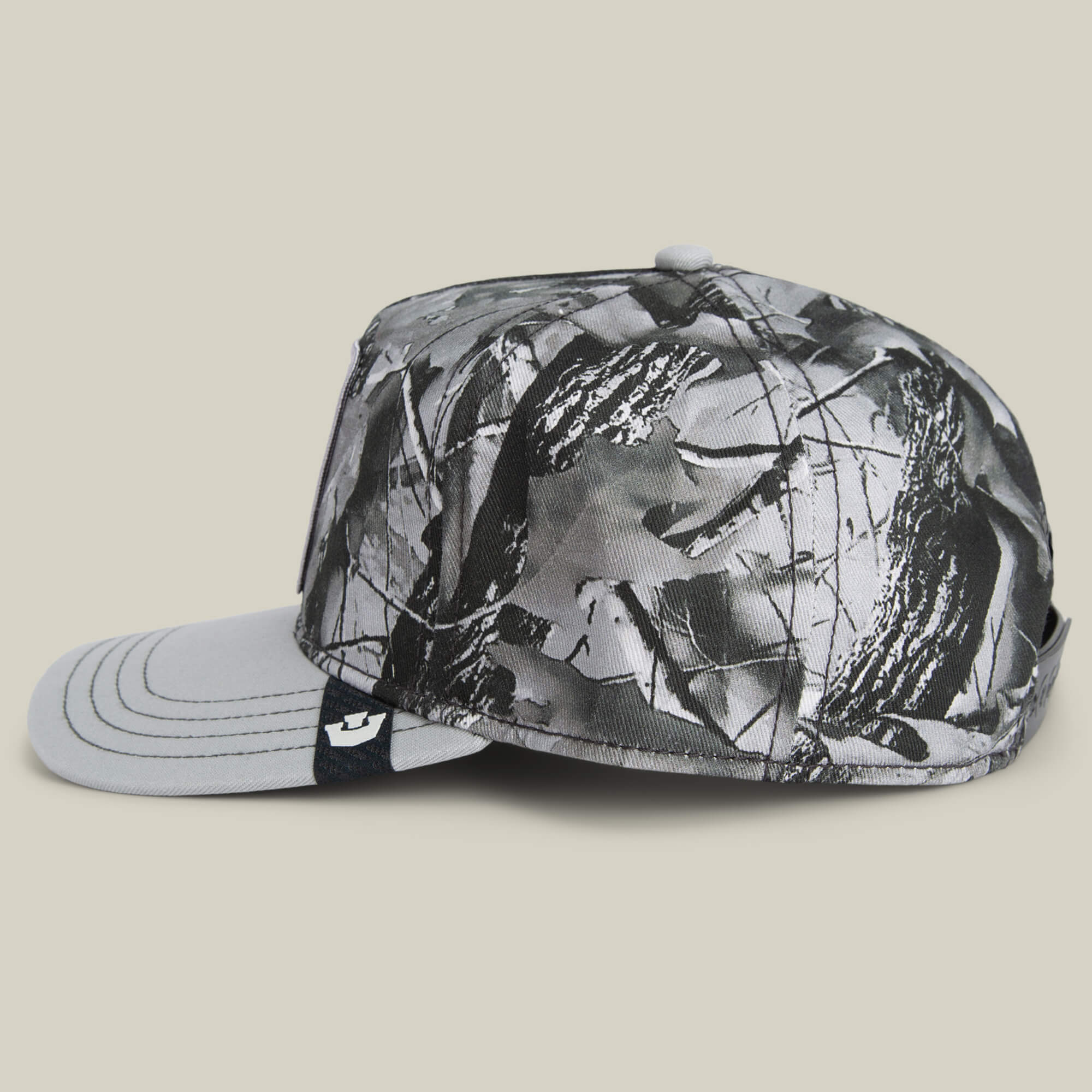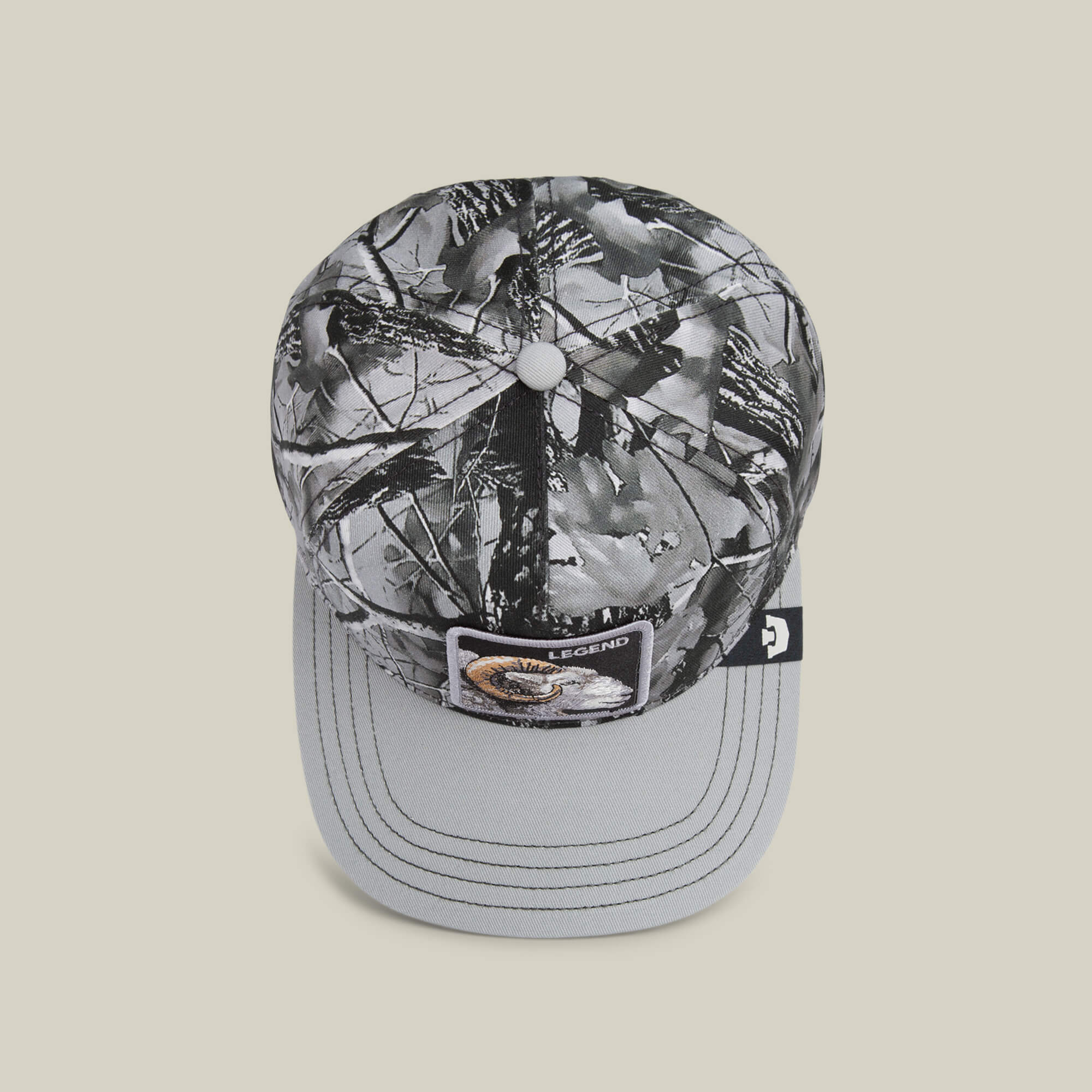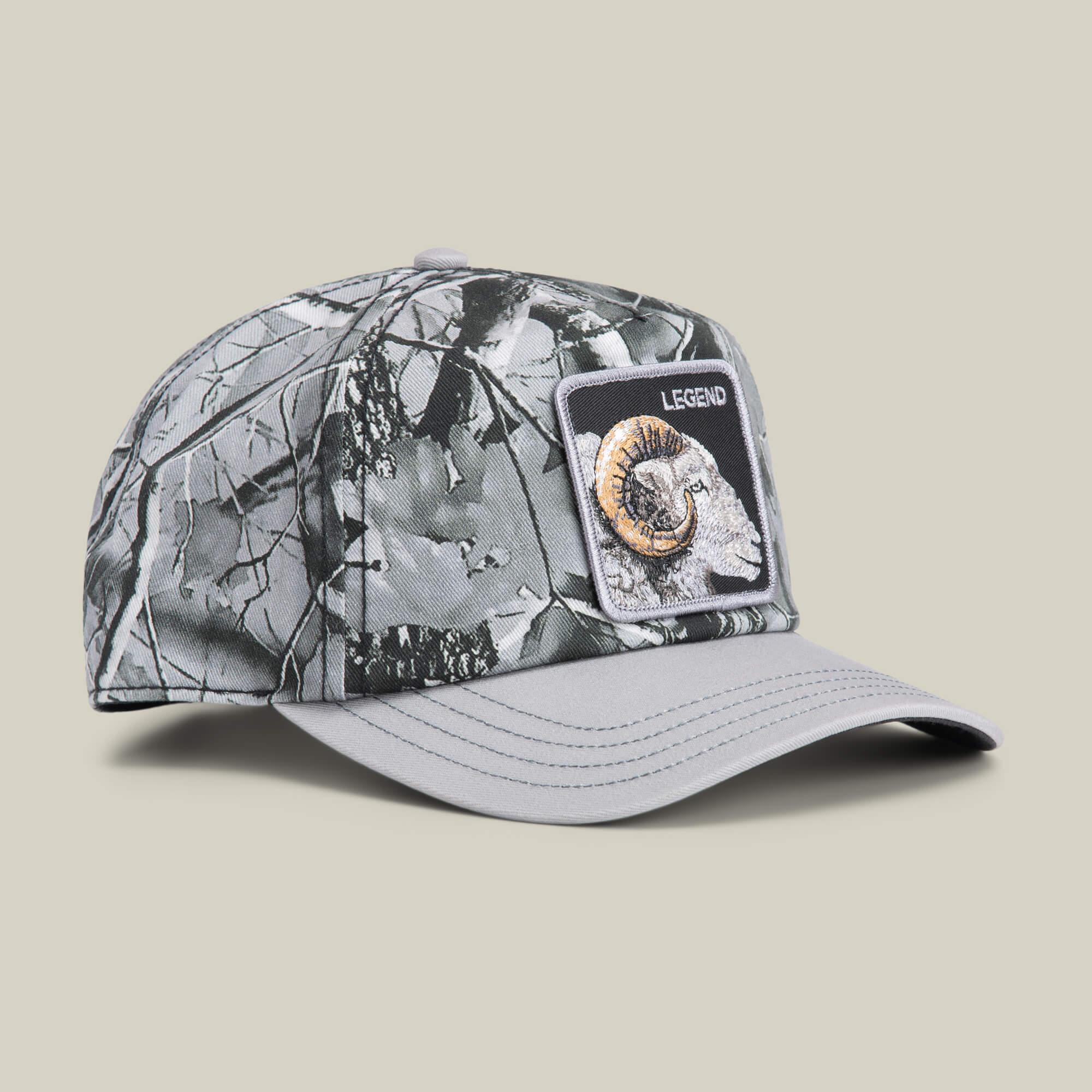 This one’s got horns, history, and a whole lot of swagger. The bighorn patch earns its name—LEGEND—and the frosted camo doesn’t hurt either. Steel grey bill down low, alpine grit up top. Headwear for the headstrong.