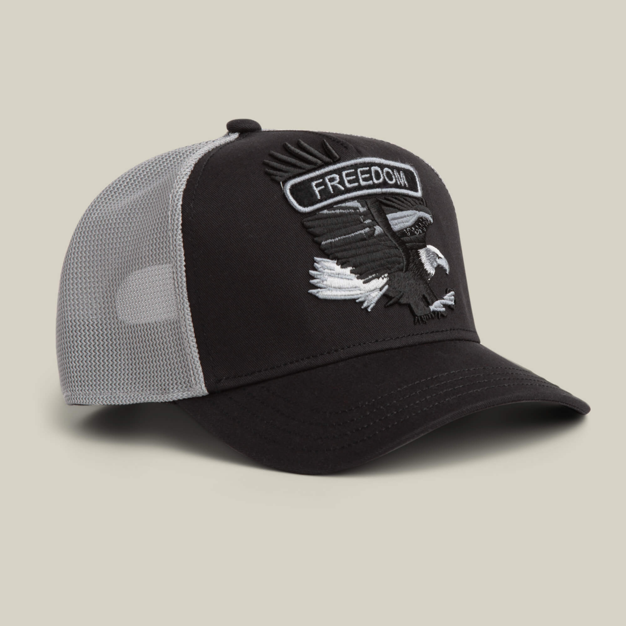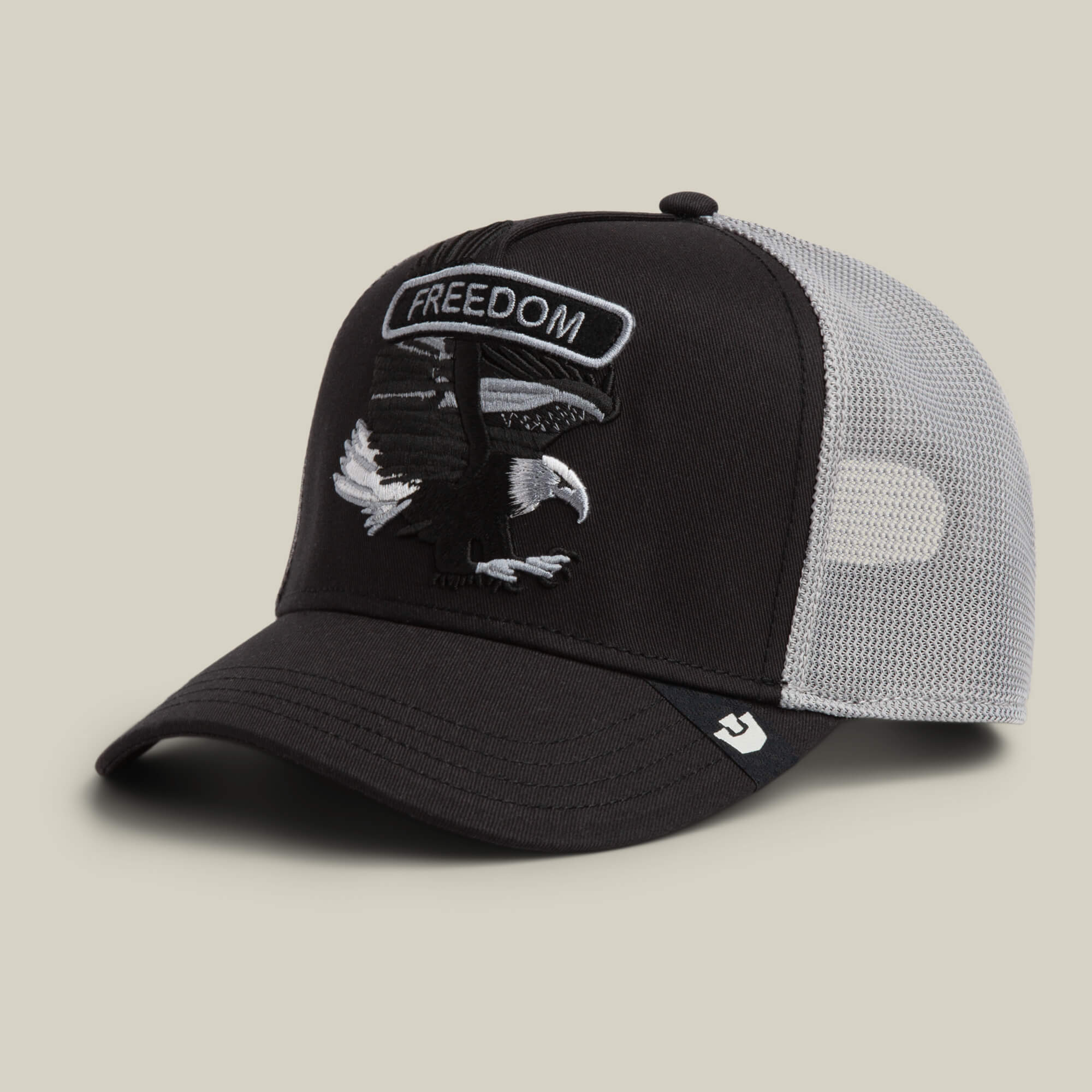 Classic Rocker Freedom keeps it black and grey with a bald eagle patch that looks mid takeoff and not asking permission. The word Freedom sits loud up top while the eagle does the real talking, wings spread and eyes locked forward. Dark colorway, eagle animal patch, zero subtlety, because freedom never whispered.